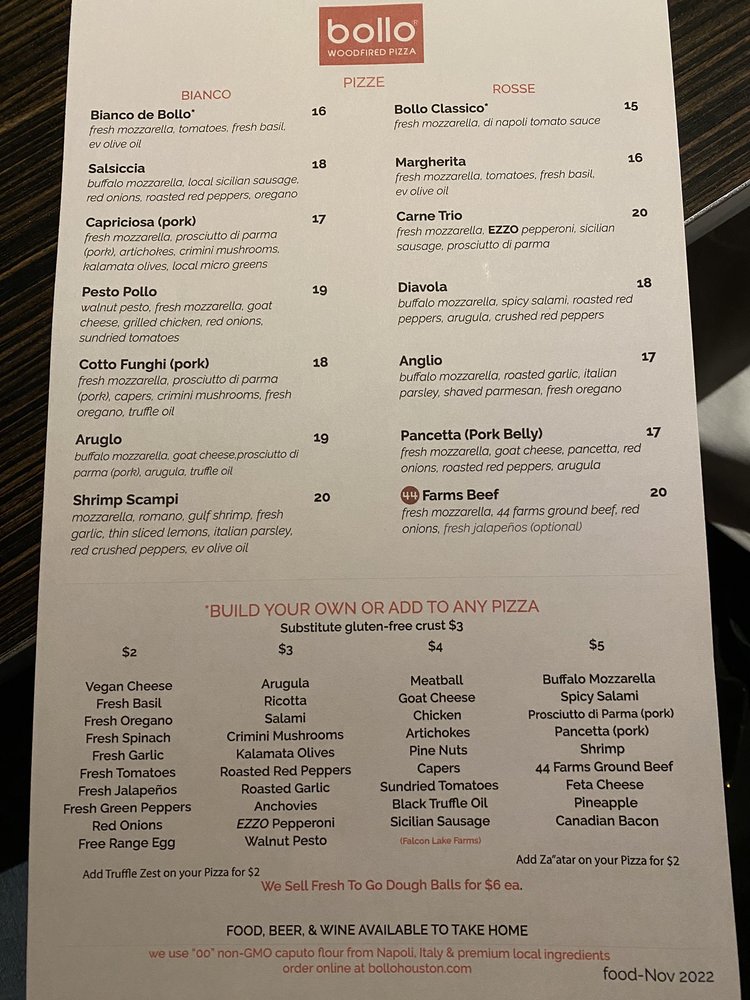 Welcome to Bollo Woodfired Pizza, where Italian culinary joy meets the charm of Houston. Nestled at 2202 W Alabama St A, Bollo serves an impressive wood-fired pizza menu that caters to diverse palates. Each dish, from the Bianco de Bollo with its fresh mozzarella and basil to the hearty Pancetta Pizza cooked to perfection, captures authentic flavors and freshness that keep diners returning.
